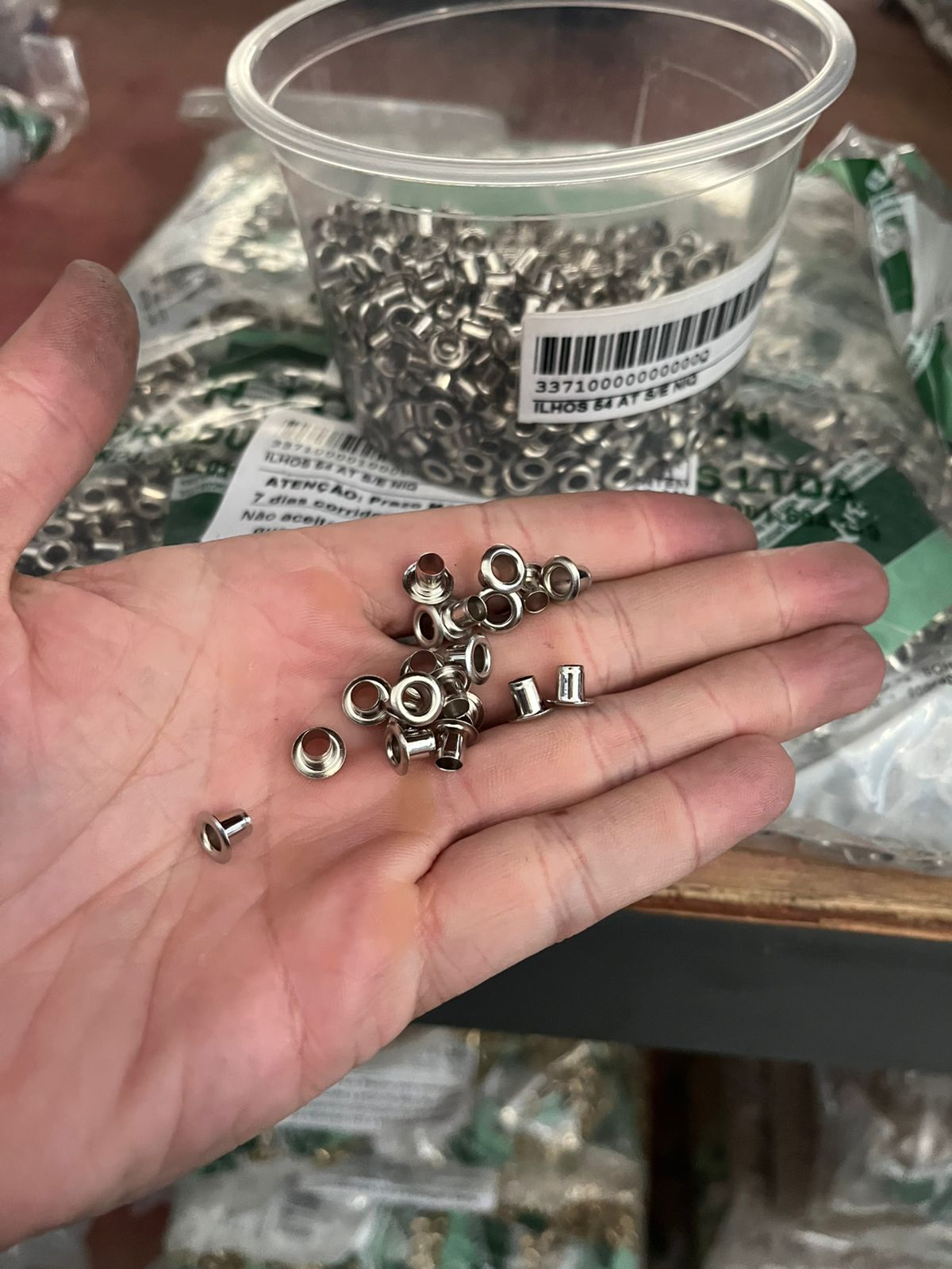 Peça essencial para reforço de furos e passagem de cadarços com mais durabilidade.